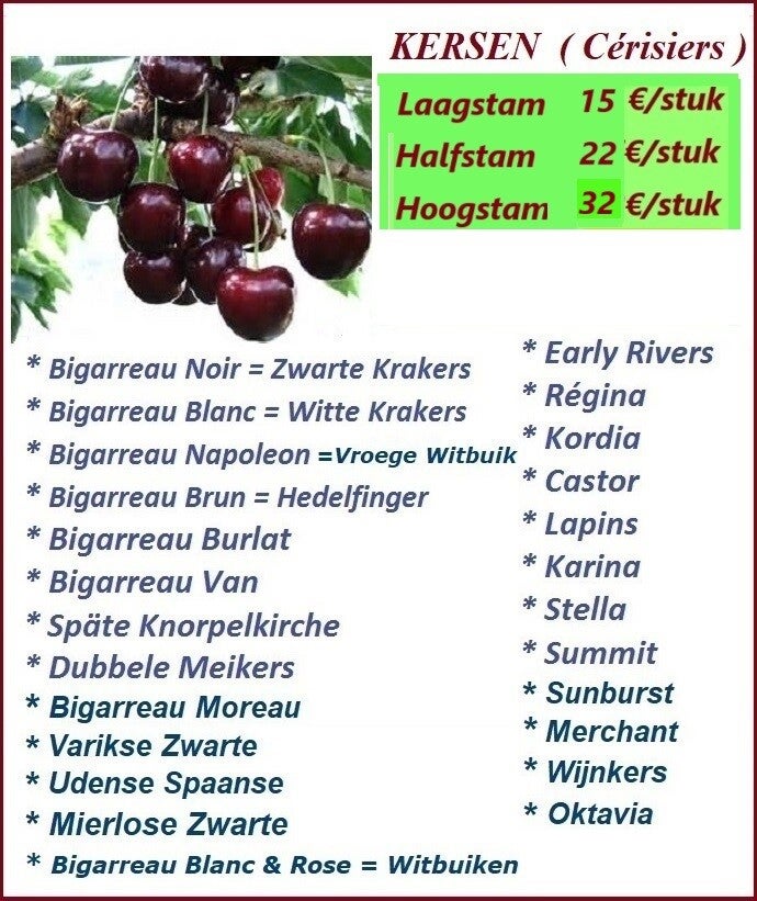 LAAGSTAM KERSENBOMEN: oa REGINA, KORDIA, BIG. BURLAT,.. 15€ | 2dehands