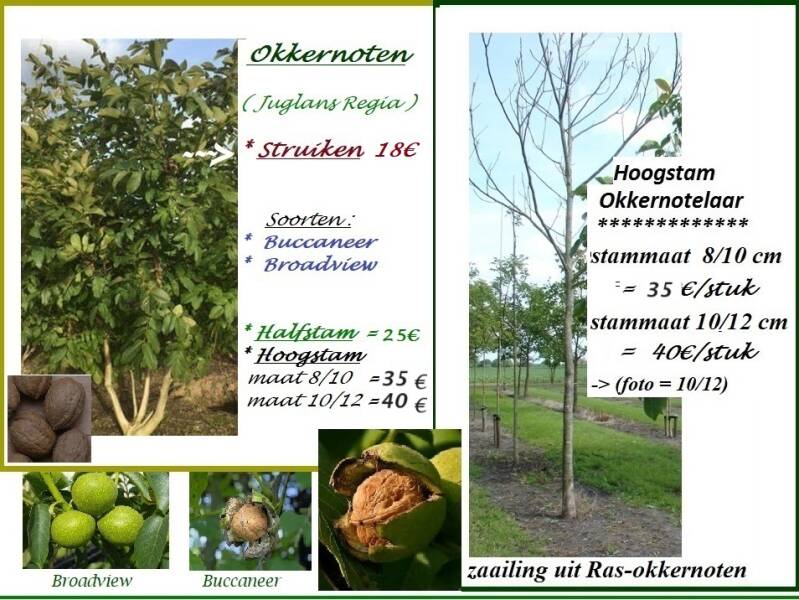 OKKERNOTELAARS, juglans regia, Vuistnoten, "Buccaneer" & "Broadview" ,